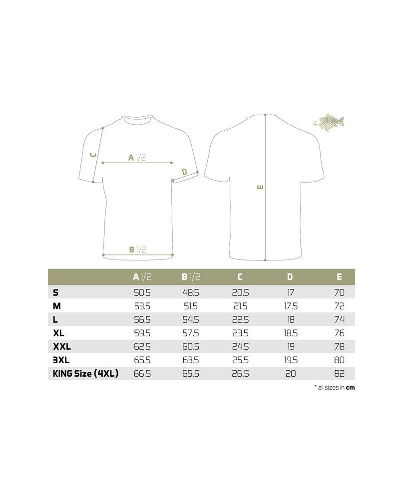 Sama koszulka jest wysokiej jakości, podobnie jak zastosowany kolorowy nadruk. Oferujemy je w szerokiej gamie rozmiarów, od S do KING SIZE (odpowiednik 4 + XL, który w większości krajów nazywa się XXXXXL). Model żartobliwie nazwany KING SIZE ubierze nawet wędkarz o wadze 135 kg+.