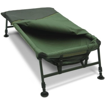 Kołyska na aluminiowym, składanym stelażu, który został wyposażony w 4 niezależnie regulowane nóżki. Mocny gumowany materiał pozwala utrzymać matę w czystości a siatki wszyte po dwóch stronach swobodnie odprowadzają wodę.