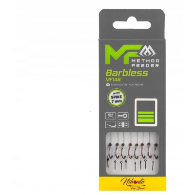 Gotowe przypony do Method Feeder, uwiązane na wzmocnionych i niezwykle ostrych, bezzadziorowych hakach MF14. Gwarantują pewne trzymanie nawet największych okazów. Zakończone igłą. Wersja na plecionce.