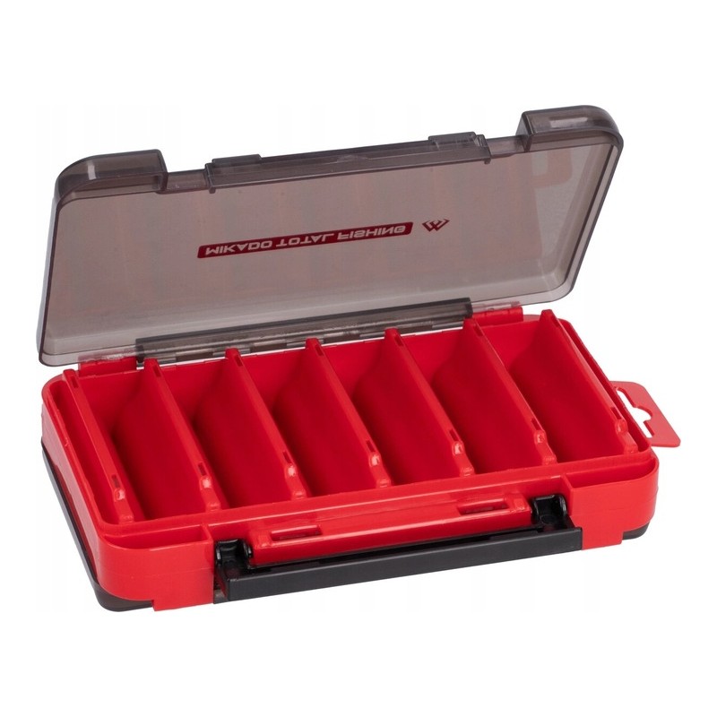 Dwustronne pudełko wędkarskie wykonane z wysokiej jakości plastiku z pewnym zamykaniem. Wyposażone w gąbkę z jednej strony oraz klasyczne plastikowe przegródki z drugiej. Świetnie sprawdzi się na obrotówki, woblery, wahadłówki czy cykady.