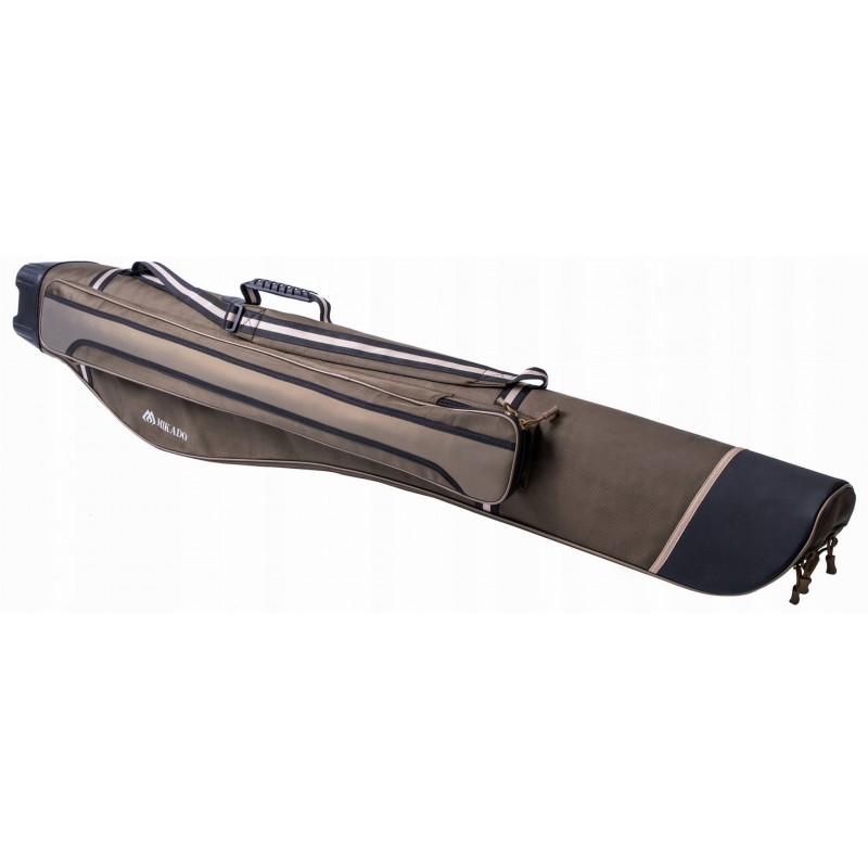 Sztywny pokrowiec do transportu wędzisk Mikado został wykonany z gęstej Cordury, która charakteryzuje się bardzo wysoką odpornością na przetarcia. Dół pokrowca został wzmocniony, aby możliwe było pionowe ustabilizowanie go.