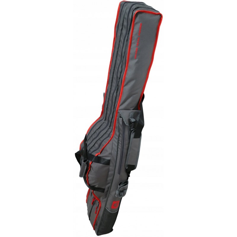 Praktyczny i pojemny pokrowiec wędkarski wyposażony w 3-4 duże komory, które bez problemu pomieszczą złożone wraz z kołowrotkami zestawy wędzisk. Dodatkowe boczne kieszenie pomogą w wygodnym transporcie np. parasola czy podpórek.