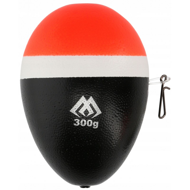 Sumowy spławik o wyporności 300g stworzony został do łowienia największych drapieżników na duże przynęty. Wyposażony w agrafkę szybkiego montażu do zrywki oraz konektor do świetlika.