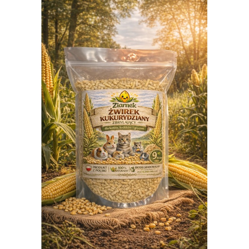 Ziarnek Żwirek Kukurydziany Zbrylający 9 L to doskonały wybór dla opiekunów, którzy chcą zadbać o czystość, higienę i komfort swoich pupili każdego dnia.