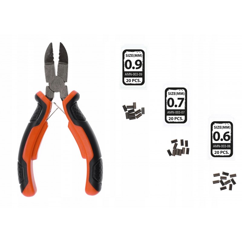 Szczypce do zaciskania metalowych tulejek podczas produkcji przyponów karpiowych z materiałów sztywnych. Za pomocą tulejek z zestawu możliwe jest konstruowanie własnych odcinków np. fluorocarobonu, podczas wiązania antysplątaniowych przyponów rzutowych.