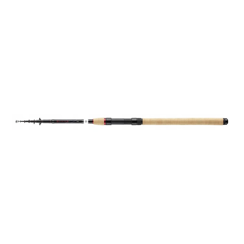 Ich akcja nie jest dużo gorsza niż w przypadku wędzisk składanych typu spike, a ich pełnowęglikowe szczytówki są niezwykle wytrzymałe i doskonale współgrają ze zrównoważoną akcją blanku. Teleskopy Ninja X zapewniają prawie takie samo czucie przynęty podczas łowienia sztucznymi przynętami jak dwuczęściowe składane wędki. Wysoka siła i akcja szczytówki pozwala na bardzo długie rzuty i jest skuteczna w neutralizacji silnych uderzeń głowy dużych ryb. Ninja X Tele nadają się oczywiście również do łowienia na pływalnię z naturalnymi przynętami oraz do połowów gruntowych prawie wszystkich rodzimych gatunków ryb słodkowodnych. Wędki teleskopowe Ninja X Wędki teleskopowe to dobrze wyważone, lekkie, wysokiej klasy wędki teleskopowe o doskonałym stosunku ceny do jakości.