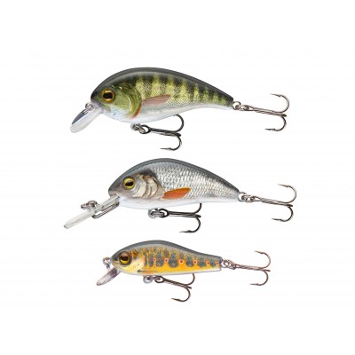 3 różne woblery we wzorach REALFISH imitujących: białą rybę, pstrąga potokowego i okonia.