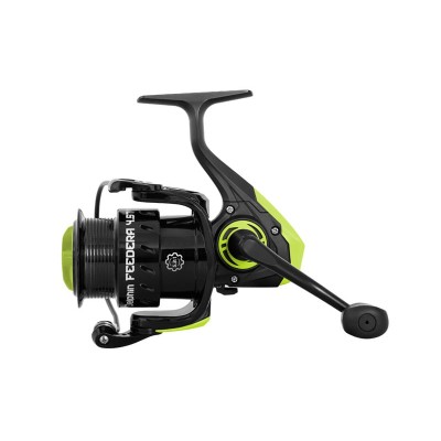 Jak sama nazwa wskazuje, kołowrotek ten został specjalnie zaprojektowany do łowienia metodą feeder. FEEDERA ma czarny korpus z matową powierzchnią i efektownymi zielonymi detalami, które tworzą ciekawy i zauważalny model. Bardzo dobrze komponuje się z wędką o tej samej nazwie z serii REAXE. Kołowrotek ma idealny rozmiar 4500 z płytką szpulą, która nadal gwarantuje wystarczającą pojemność do dłuższych rzutów. Posiada siedem (6+1) łożysk kulkowych i przełożenie 5,2:1 dzięki czemu możesz zwijać zestaw wystarczająco szybko. Korbka ma czarny matowy kolor i czarną gumową część zapewniającą wygodny chwyt. Hamulec jest mocny i czuły.