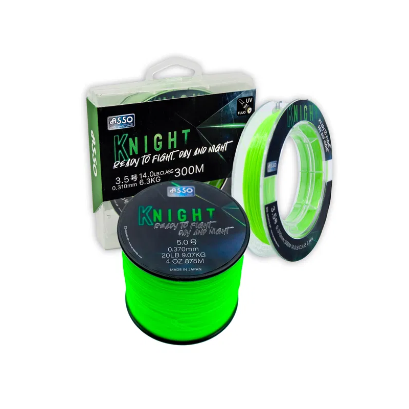 KNIGHT to żyłka pokryta fluorocarbonem barwiona w masie, żyłka z centralnym rdzeniem wykonanym z czystego nylonu, który jest pokryty warstwą fluorowęglowodoru. Dzięki tej właściwości pozwala na większą czułość i miękkość (która jest w zasadzie cechą wysokiej jakości włókna nylonowego), w połączeniu z niewidzialnością w wodzie i wyjątkowo wysoką odpornością na zużycie charakterystyczną dla fluorowęglowodoru. Dostępne w pakietach 150m - 300m i 1200m